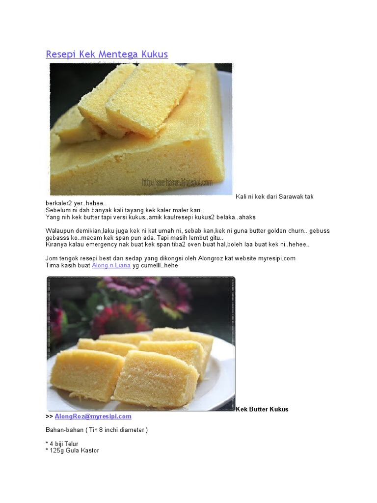 Hari ni saya nk share resepi kek kegemaran mase kite kecik2 duluDulu masa kecik2 mak selalu buat kek mentega ni lembutwangi sed. Tidak salah Kami punya Resepi Kek mentega oren yang top untuk Anda di sini. Dalam memasak perlu diperhatikan persiapan bahan yang akan digunakan serta langkah-langkah dalam mengolah.